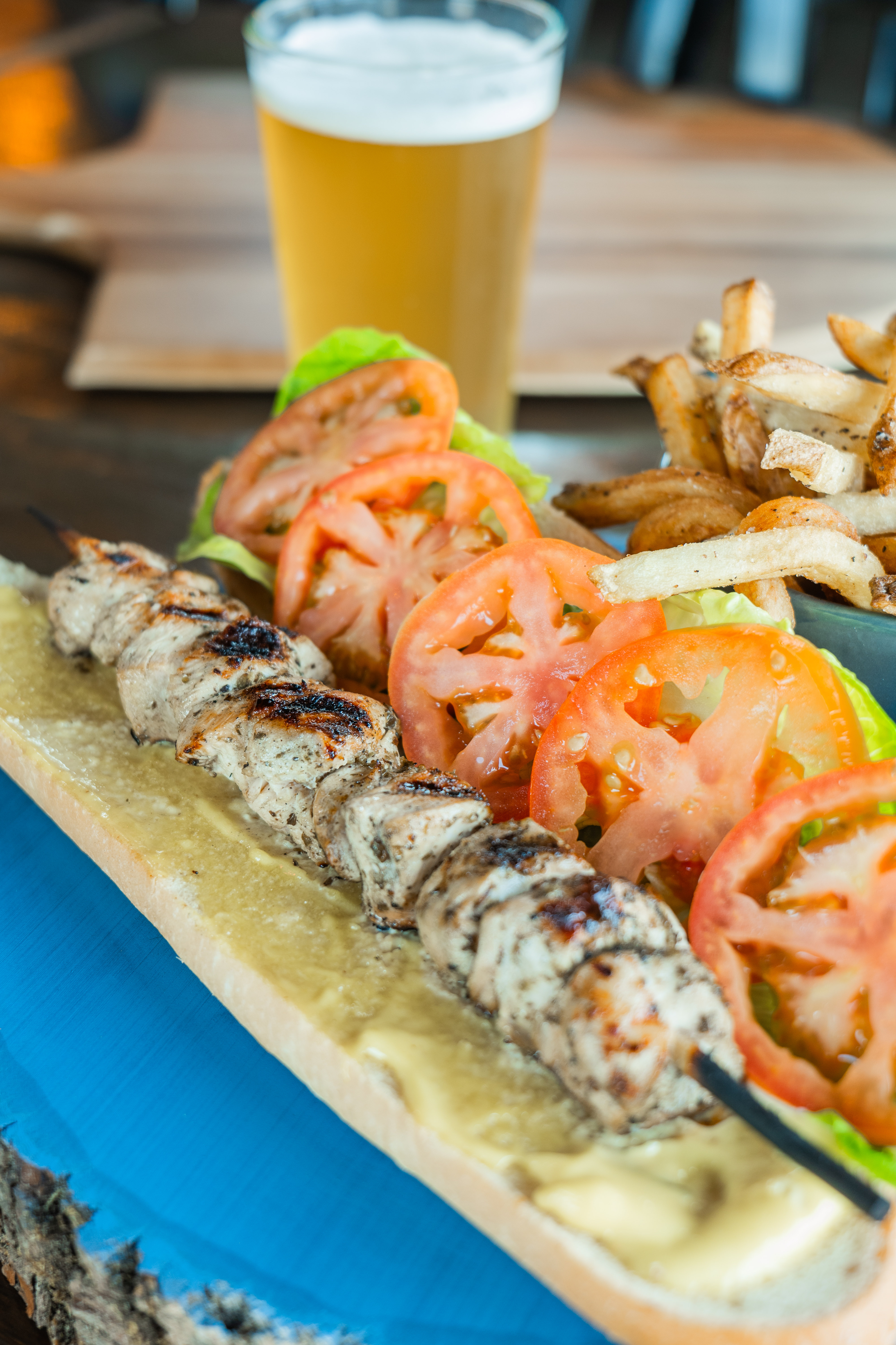 | Brioche, Skewered Joyce Farms Chicken, Garlic, Olive Oil, Oregano, Basil, Lemon | |